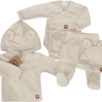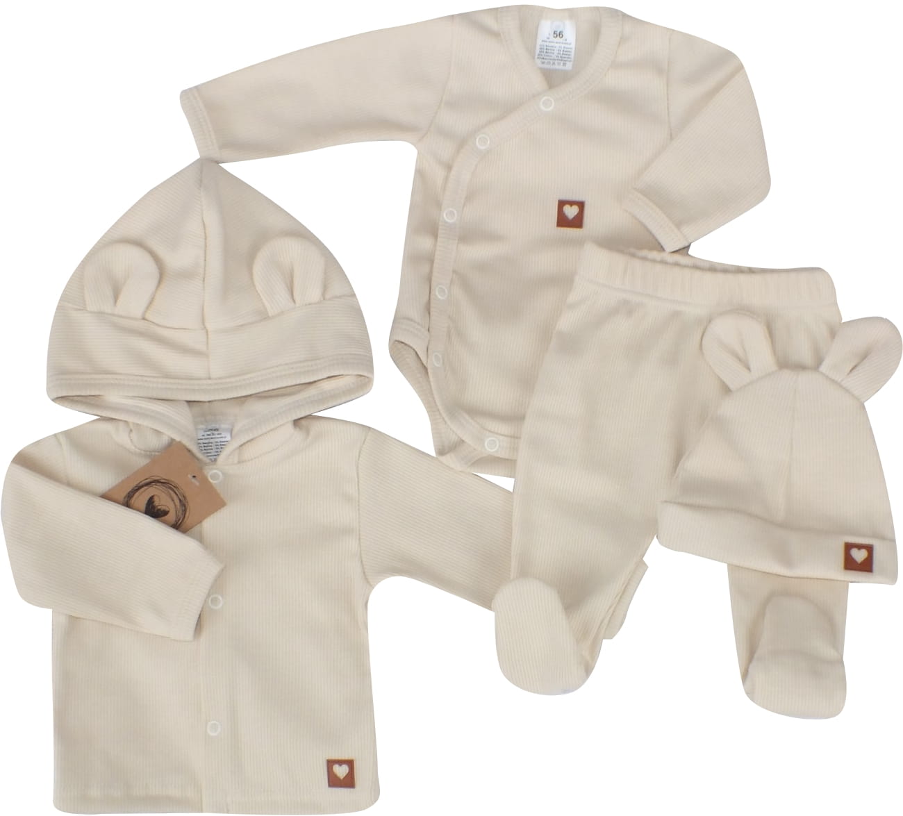 Sada do pôrodnice 4D, rebrovaná, body, polodupačky, kabátik a čiapočka, ecru, veľ. 62