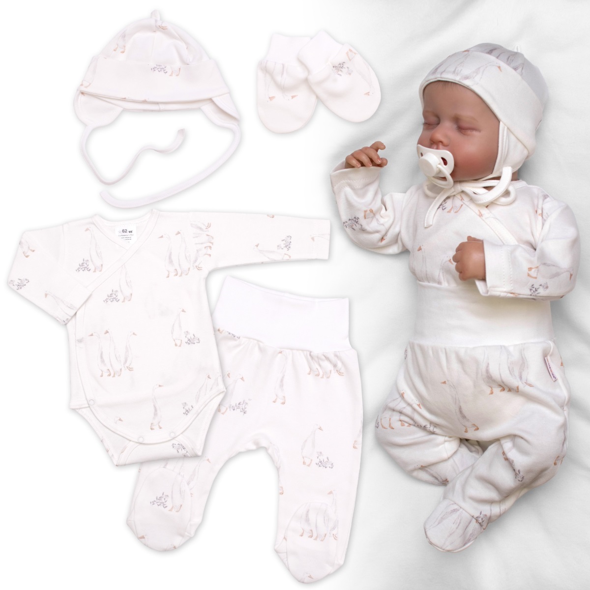 Sada oblečenia pre bábätko, 4D, bavlna, Husičky, smotanové, veľ. 68