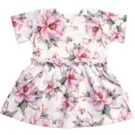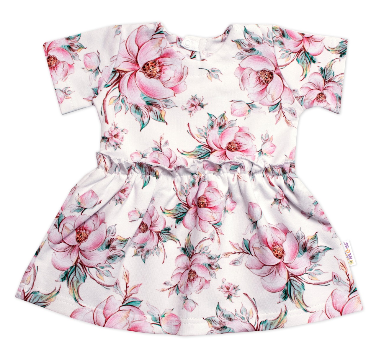 Šaty kr. rukáv, bavlna, Ružičky Baby Nellys, smotanové, veľ. 128/134