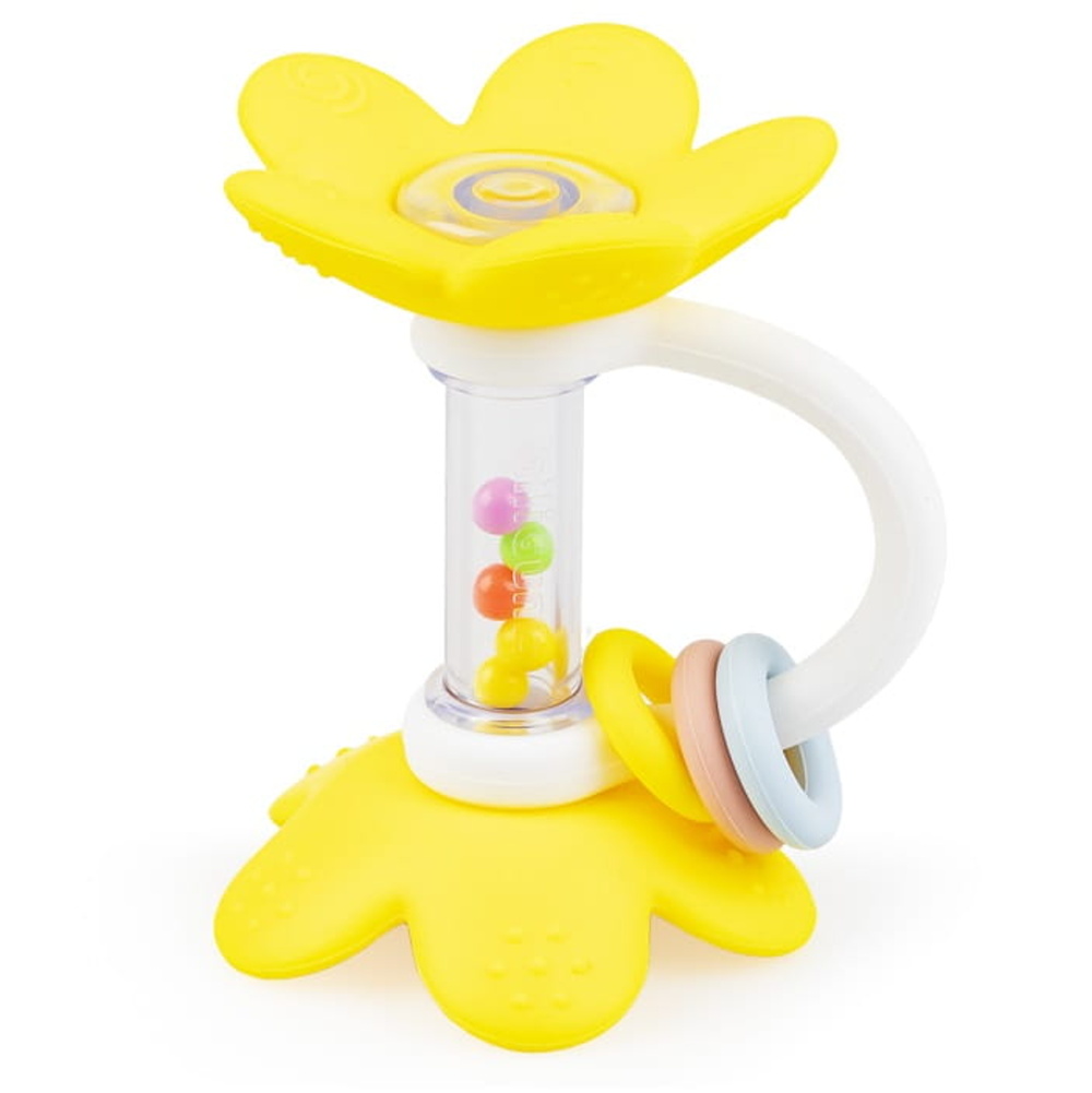 Silikónové hryzátko, hrkálka Kvetina, žlté