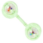Dômyselná hračka v tvare činky zachrastí dvakrát pre dvojnásobnú zábavu! Je vybavená dvoma guličkami naplnenými farebnými korálkami, ktoré pri zatrasení vydávajú veselý zvuk.
