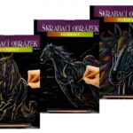 Po zoškriabaní liniek predtlačeného obrázku sa Vám objaví krásny rytinový obrázok, ktorý sa pekne leskne z rôznych uhlov pohľadu. Sada obsahuje obrázok natlačený na čiernom kartóne, škrabacie pero a vzorku na vyskúšanie.