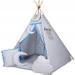 Stan pre deti típí Baby Nellys, výbava – šedý s modrými brmbolcami