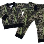 Štýlová bavlnená tepláková súprava G-baby, Dino – khaki/čierna