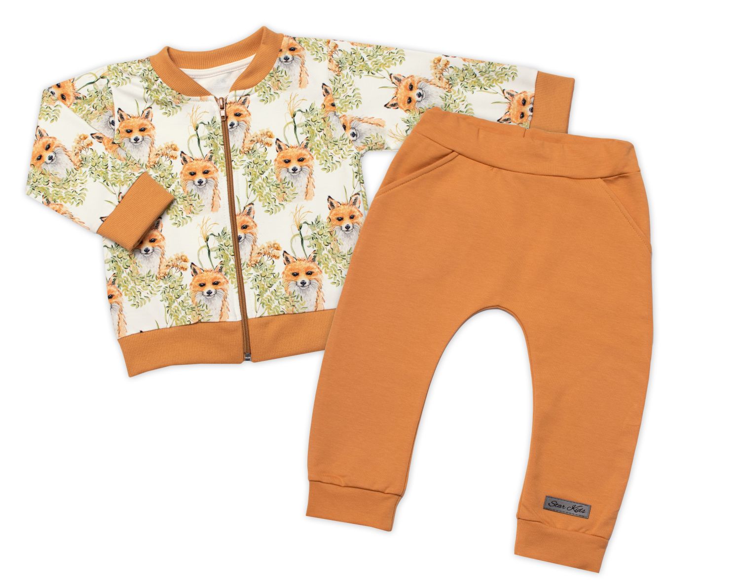 Štýlová bavlnená tepláková súprava G-baby, Líšky – horčicová, veľ. 104
