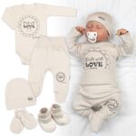 Súpravička do pôrodnice 5D Made with love, béžová, cappuccino, veľ. 62