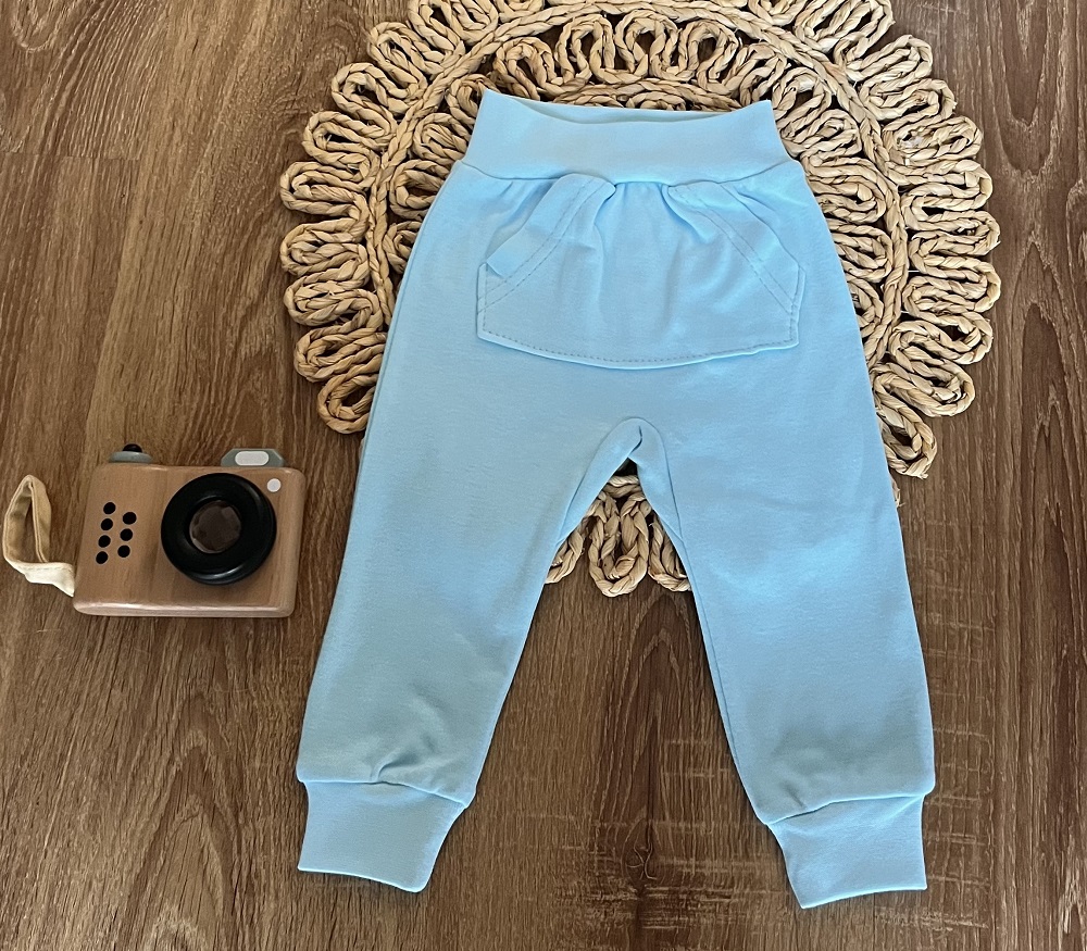 Tepláky s vreckami, bavlna Mamatti, Dino park – modré, veľ. 62