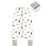 Detský otelený spací pytel so zahrnovacími nohavičkami je vyrobený zo 100% prírodnej bavlny.