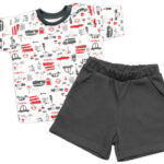 Tričko, krátky rukáv + kraťasky, 2D, Baby Nellys, Autá, bavlna, smotana/sivá