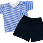 Tričko s vreckom, kr. rukáv + kraťasky, 2D, Baby Nellys, bavlna, prúžok/granát, veľ. 86