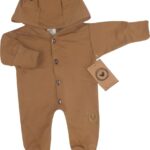 Z & Z Detský teplákový overal s gombíkmi a kapucňou, hnedý