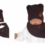 Z & Z Dvojvrstvová rebrovaná čiapočka s uškami + šatka, čokoládová, 92/98