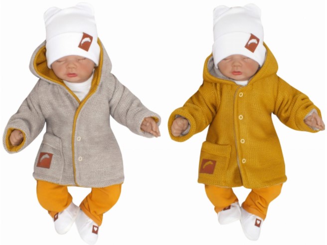 Z & Z Pletený, obojstranný svetrík s kapucňou, horčicovo-bežový, veľ. 68