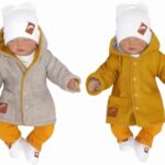 Sada do pôrodnice 5D, body, polodupačky, kabátik, čiapočka, rukavičky – marhuľa