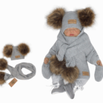 Z & Z Zimná čiapka s brmbolcami z kožušinky s šálou 2V1, sivá