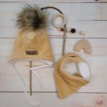 Zimná dvojvrstvová čiapka na zaväzovanie s brmbolcom z kožušinky+šatka Z&Z, béžová,veľ.68