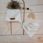 Zimná dvojvrstvová čiapka na zaväzovanie s brmbolcom z kožušinky+šatka Z&Z, biela, veľ.68