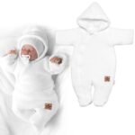 Zimná pletená kombinéza/overálok s kapucňou Baby Nellys – bílá, veľ. 62