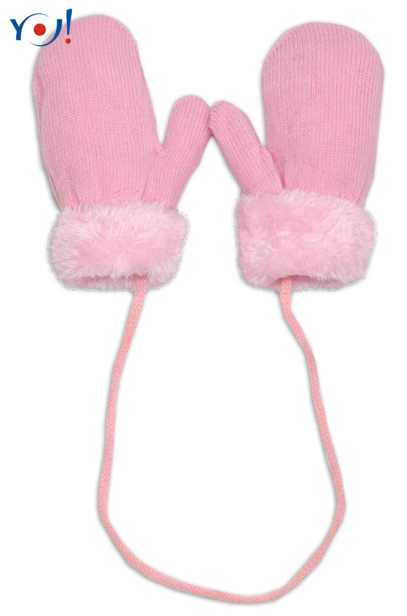 Zimné dojčenské rukavičky s kožúškom -so šnúrkou YO-sv. ružové/ružový kožúšok, veľ.110