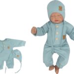 Z&Z 2-dielna súpravička rebrovaný overálok s gombíkmi a čiapočkou, morská modrá