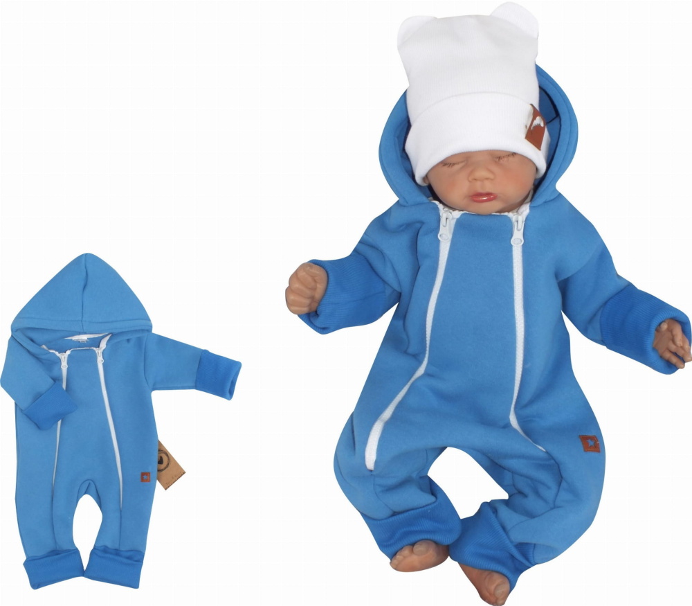 Z&Z Detský teplákový dvojvrstvový rastúci overálok s kapucňou, modrý, veľ. 80