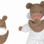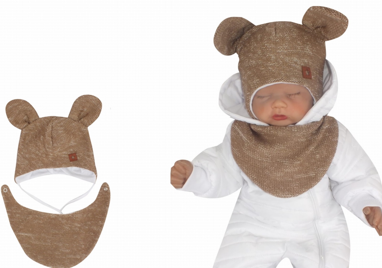 Z&Z Dvojvrstvová pletená čiapka na zaväzovanie so šatkou 2v1, Méďa – hnedá, vel. 86