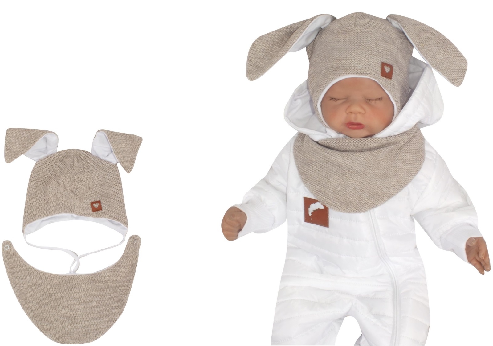 Z&Z Dvojvrstvová pletená čiapka na zaväzovanie so šatkou 2v1, Zajačik – béžová, veľ. 68