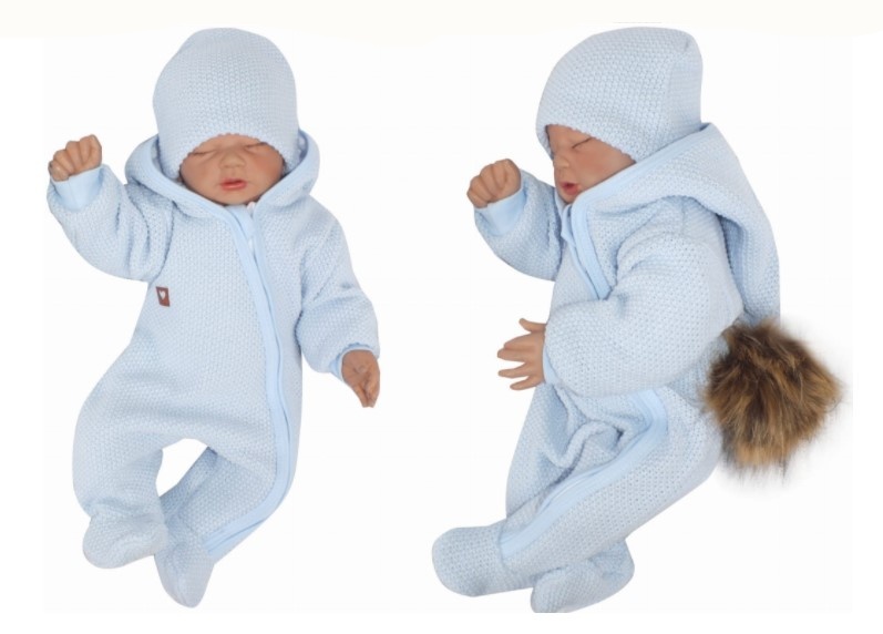 Z&Z Prechodová kombinéza s kapucňou a kožušinovou brmbolcom, modrá, veľ. 86