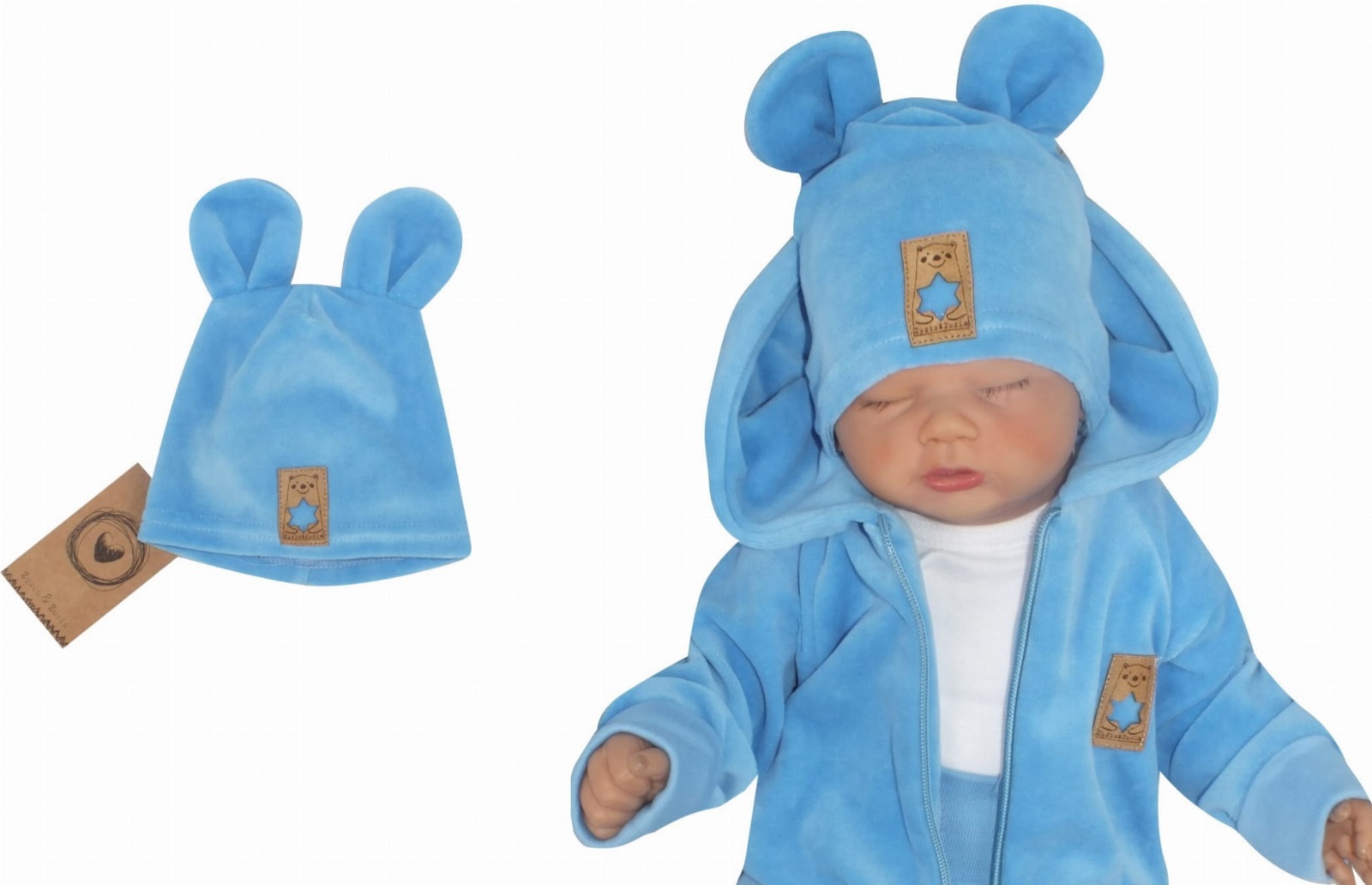 Z&Z Velúrová, semišková čiapočka s uškami, sv. modrá, 80/86