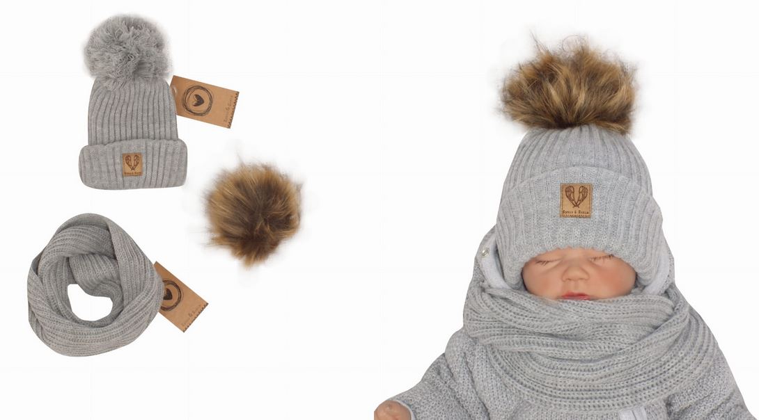Z&Z Zimná čiapka 3v1 + komín, sivá