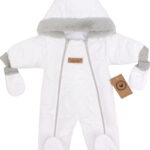 Z&Z Zimná prešívaná kombinéza s kožušinou a kapucňou + rukavičky – biela, vel. 62
